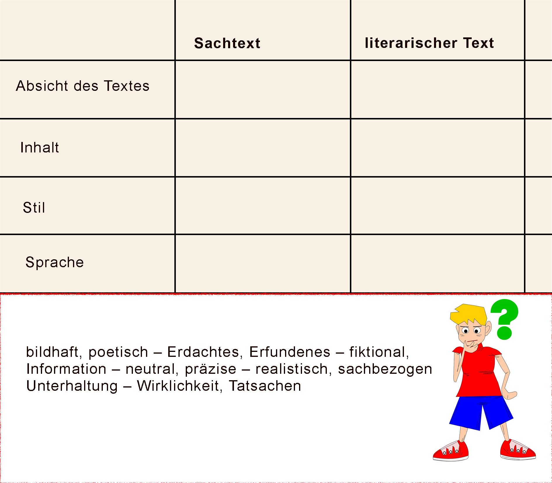 1. Wie unterscheidet sich der Sachtext von einem literarischen Text? Ergänze die Tabelle!