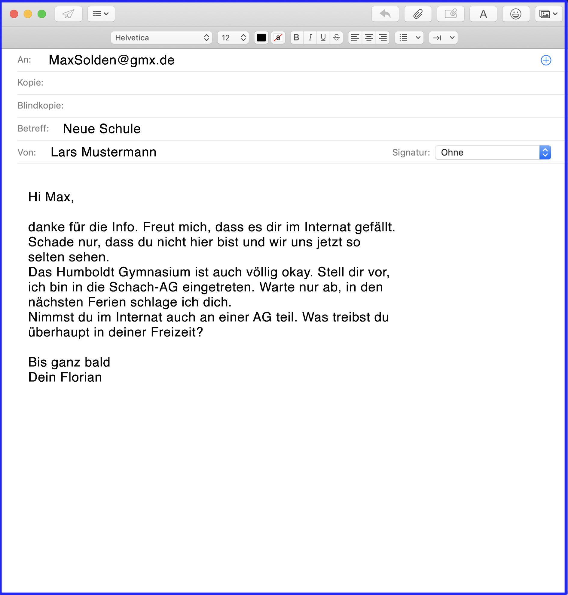 2.Vergleiche Wortwahl, Inhalt und äußere Form von Florians E-Mail mit dem Brief von Elena.