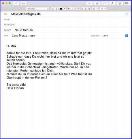 1.Beschreibe, woran du erkennst, dass die E-Mail an einen Freund geschrieben wurde.