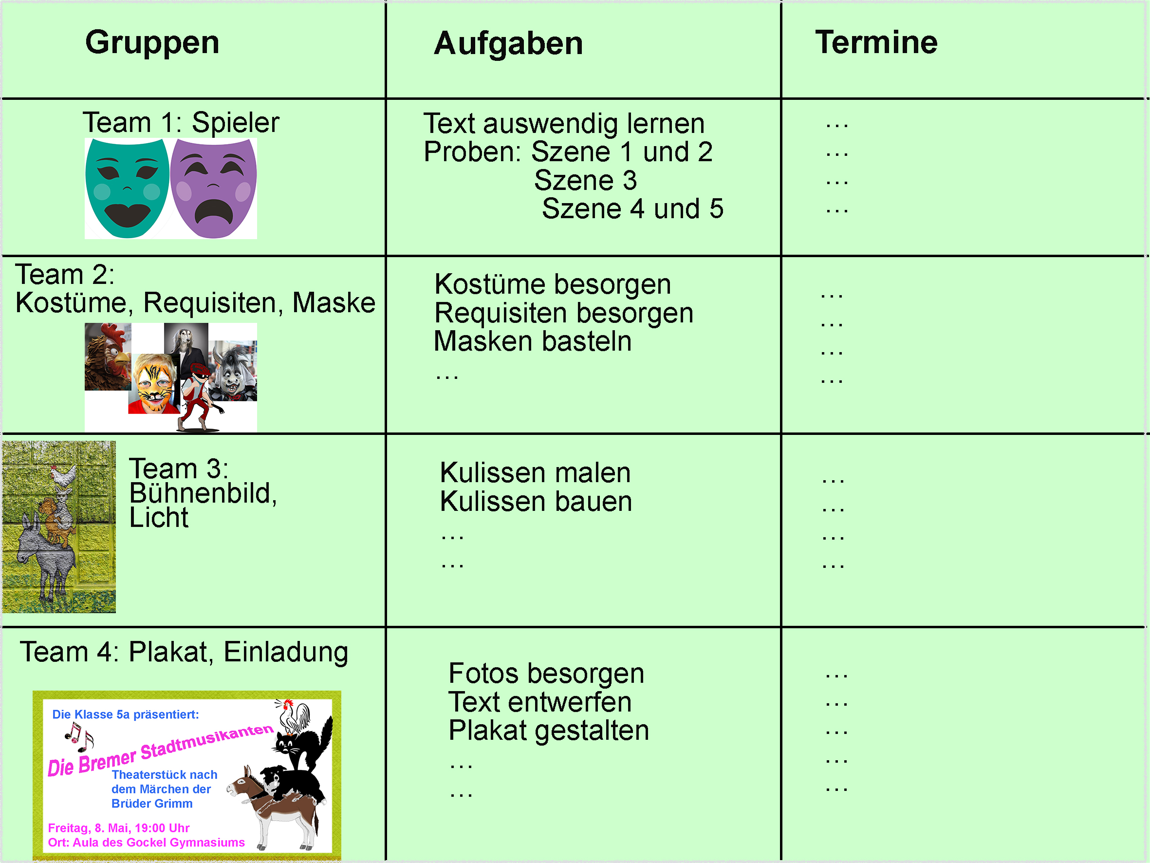 Gestaltet ein Plakat und eine Einladung zur Aufführung eures Theaterstücks.